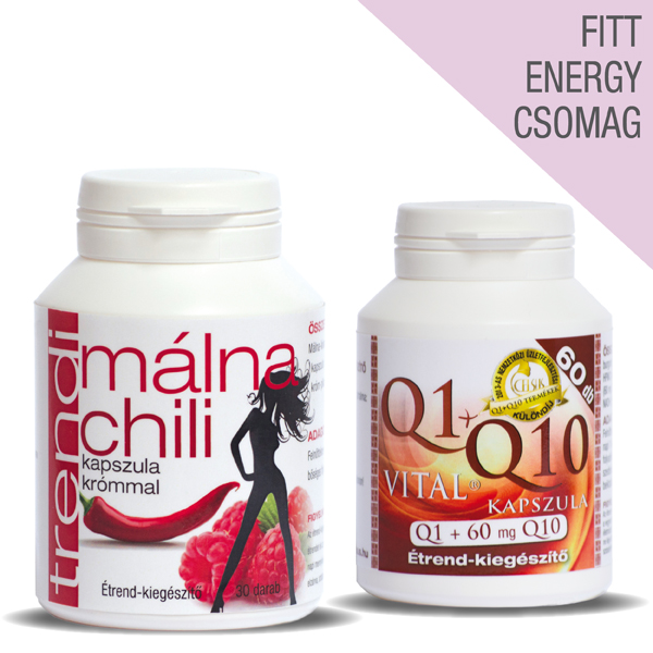 Fitt Energy csomag tartalma : 1 db Trendi Málna Chili krómmal + 1 db Q1Q10 Vital termék